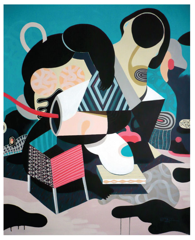 Van de schilderijen van Ted Parker naar de collages van Gino and The Garlic Myth om te eindigen bij het abstracte en organische graphic designs of Olivier Vrancken.