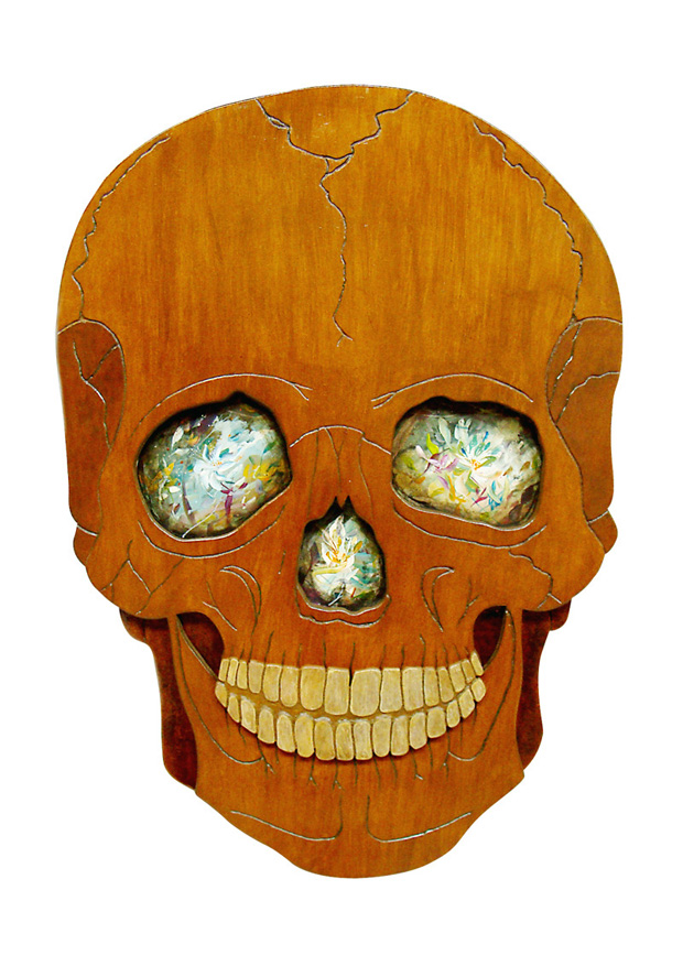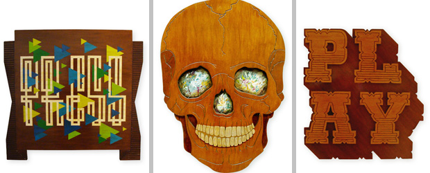 In het getoonde werk speelt hout de hoofdrol, of het nu als drager van een afbeelding dient of in lagen op elkaar de afbeelding vormt. Verder liggen zowel typografie en de illustratieve waarde hiervan, als zowel figuratief symbolische beelden ten grondslag aan de inhoud van de expositie.